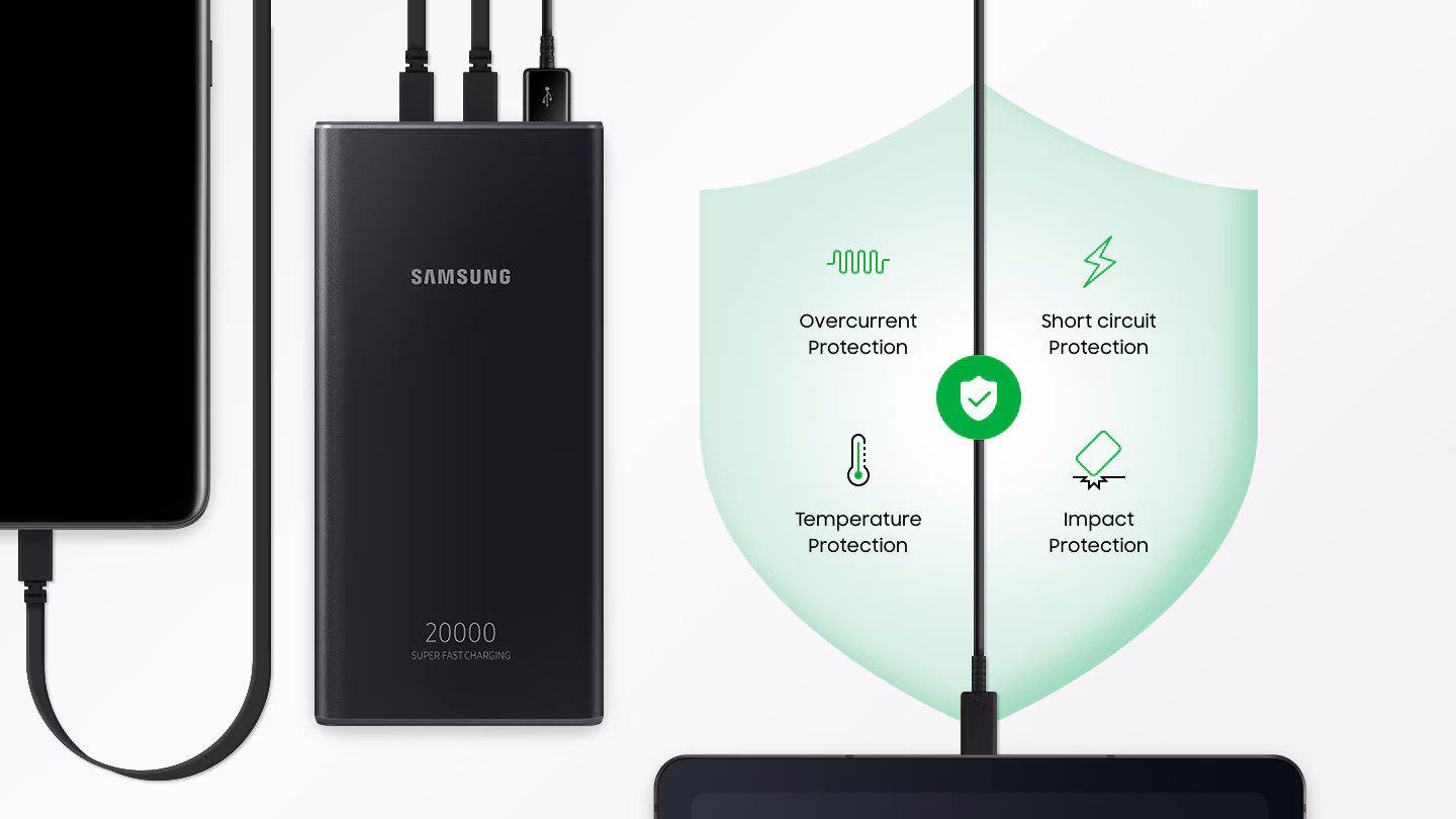 Charge your devices on the go with the Samsung 25W Battery Pack (20,000mAh). Compact, powerful, and reliable, it delivers fast charging for smartphones, tablets, and other USB-powered devices. Read more